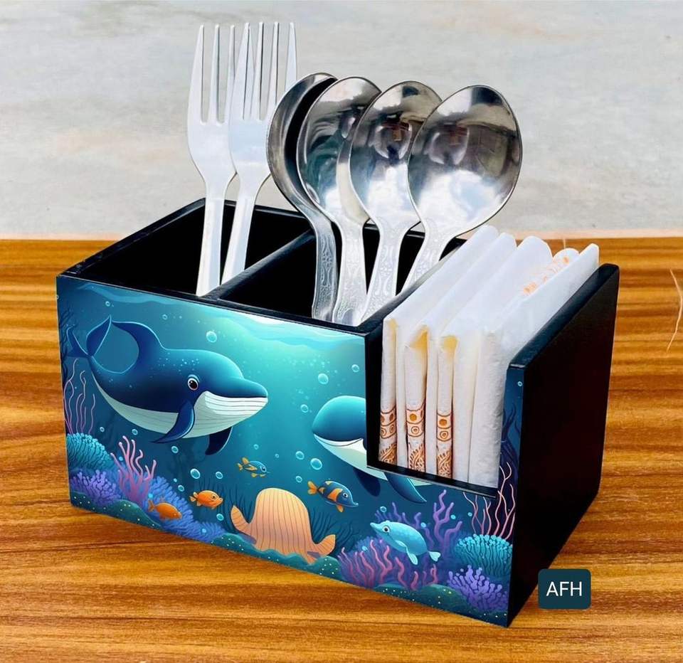 Stylish MDF Wooden Cutlery Holder Classic Design Printed Tableware Decorate for Kitchen Accessories and Tissue Usage