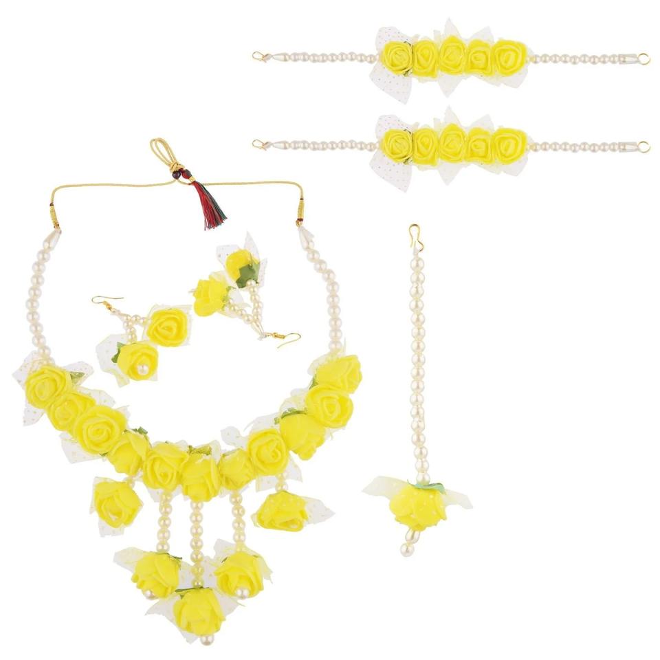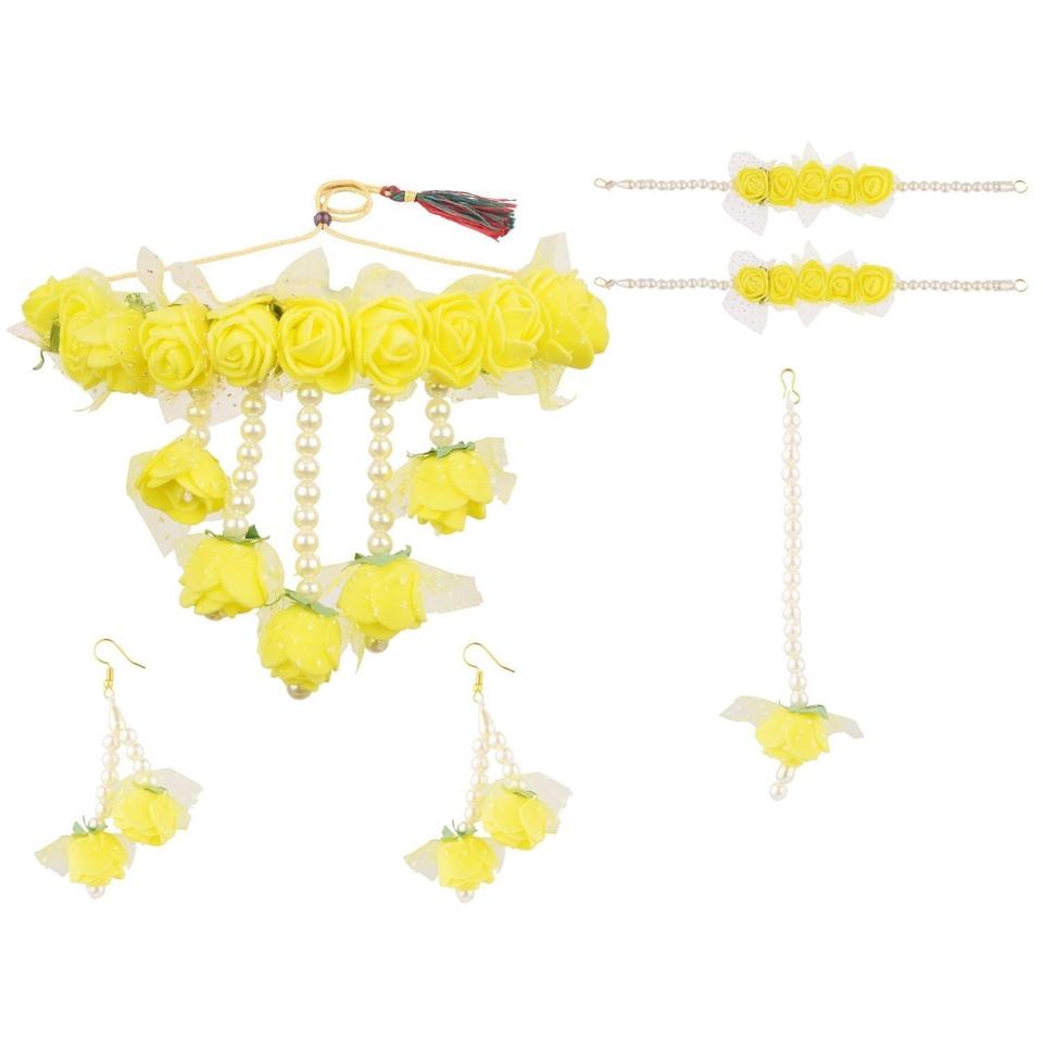 Stylish Mehndi Flower Jewelry Handmade Bridal Set with Necklace Earrings Tikka Ring and Rose Bracelet