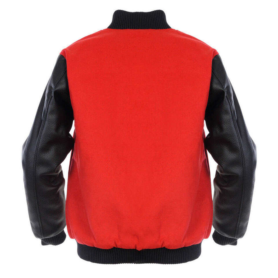 Stylish Men College Baseball Jacket Varsity Design Warm Woolen Body With Leather sleeves Outerwear for Casual Winter Wear