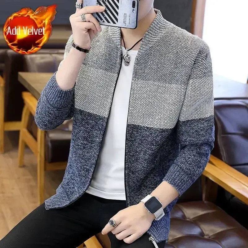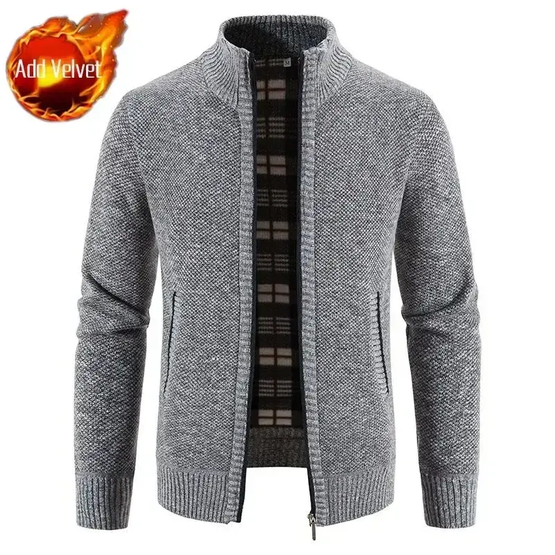 Stylish Men's Red Plaid Cardigan Hoodie Thick Winter Knit with Zipper Casual Hot-Sale