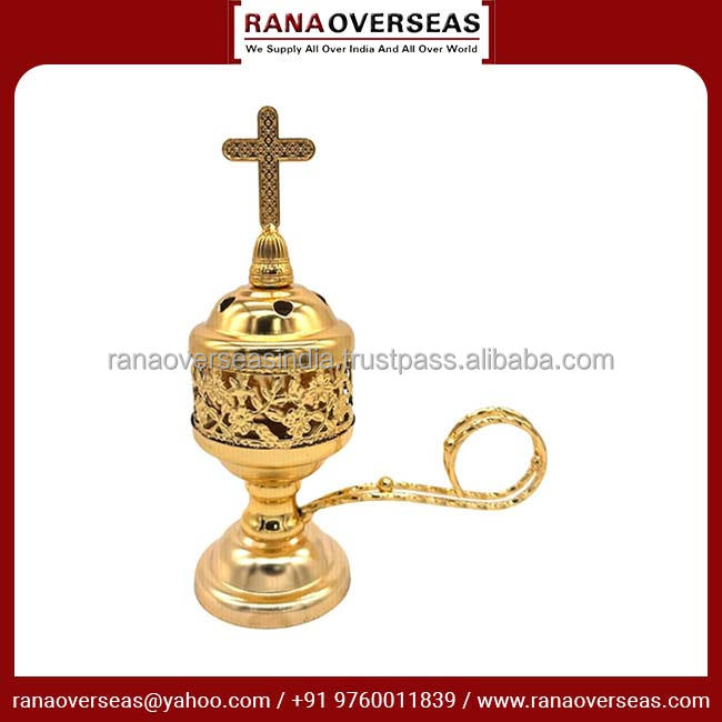 Stylish Metal Art Catholic Incense Burner Hot Sale Bakhoor Holder With Handle & Cross Knob for Yoga Spa and Relaxation