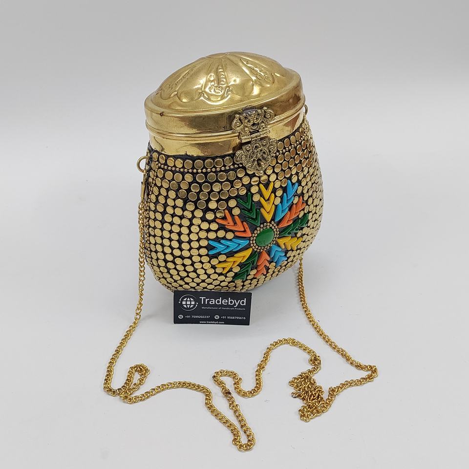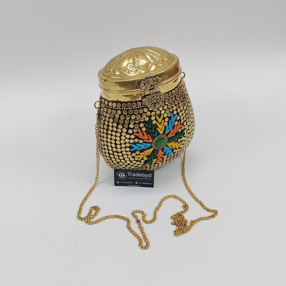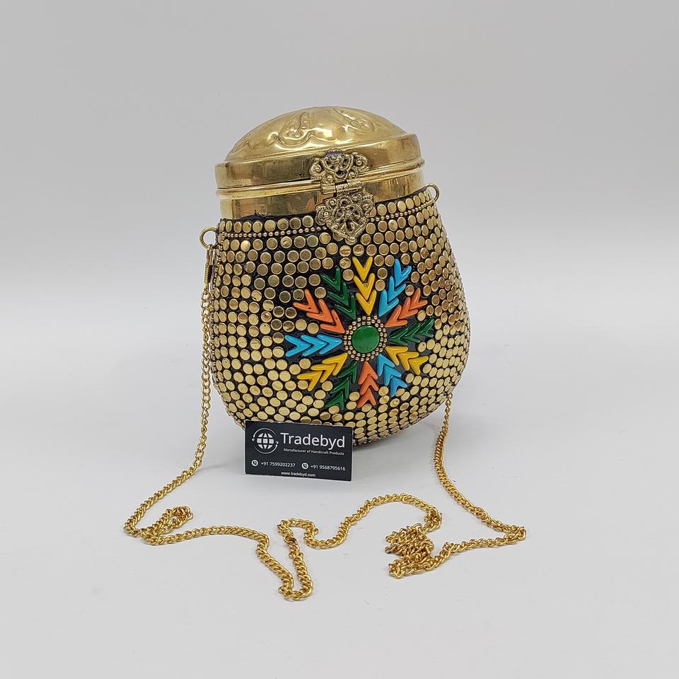 Elegant Fashionable Handmade Engraved Metal Mosaic Clutch Evening Party Purse Pearl Straps Beaded Flower for Bridal Ladies