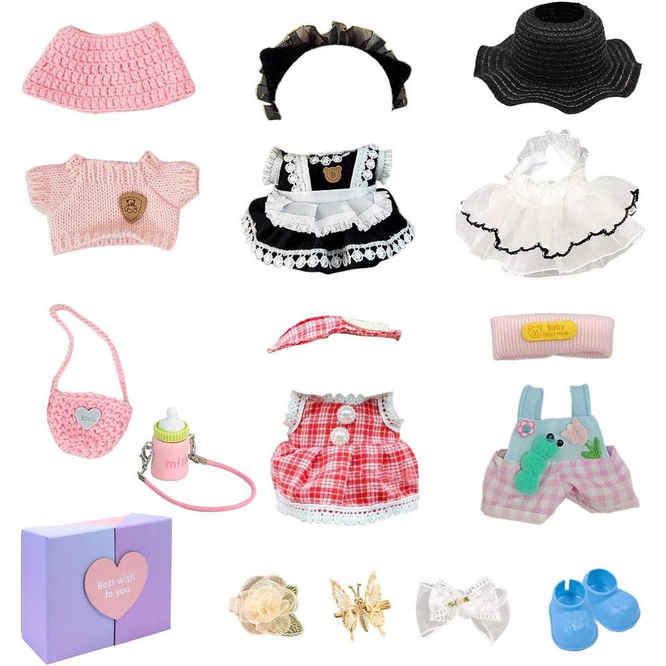 Stylish Mini Fashion 5-Piece Doll Outfits Set with Shoes Hats Bags Bows-Cute Dress-Up Accessories for 17cm Fashion Dolls
