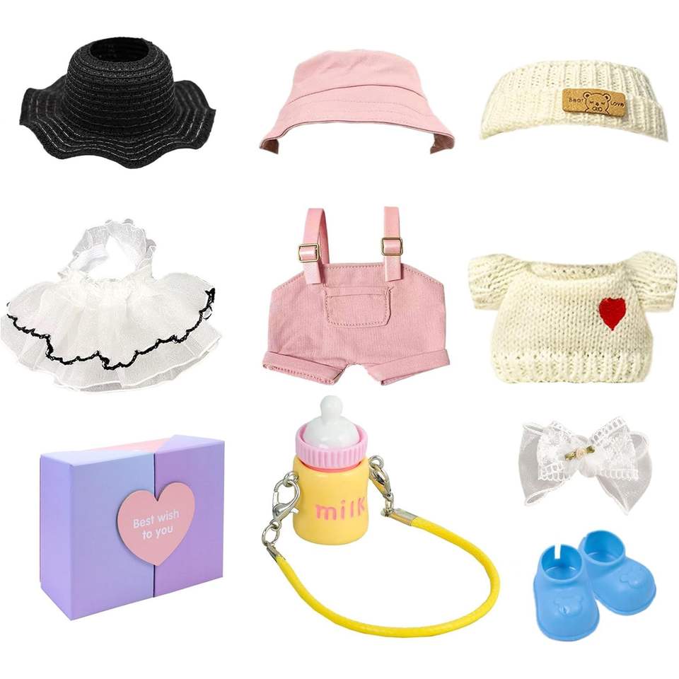 Stylish Mini Fashion Doll Outfits Set 3 Cute Dress-Up Items Clothes Shoes Hats with Bows Bags for 17cm Dolls (Doll Not Included)
