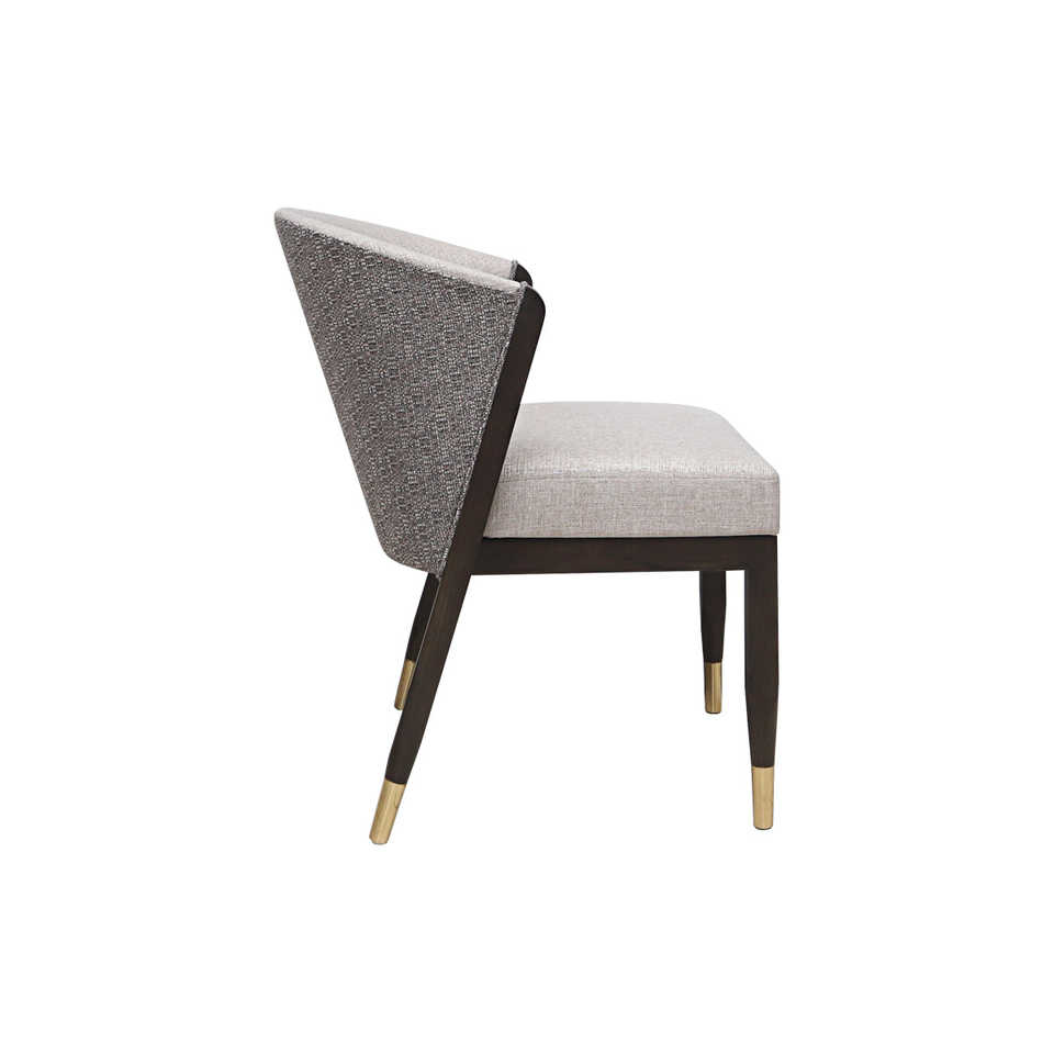 HMS Farmhouse-Style Light Gray Fabric Dining Arm Chair with Brass Accents for Living Rooms Restaurants and Exterior Use