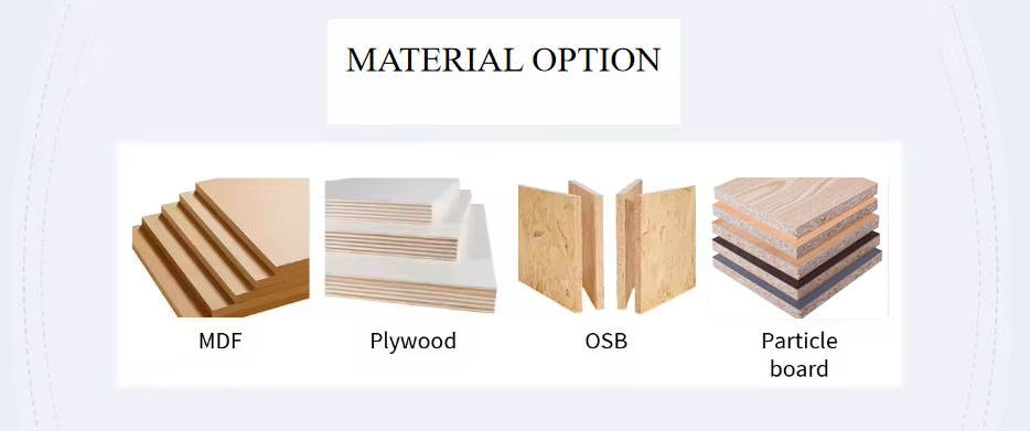 Plywood, Particleboard, MDF, Melamine Board, Solid Wood, GlassDoor Material