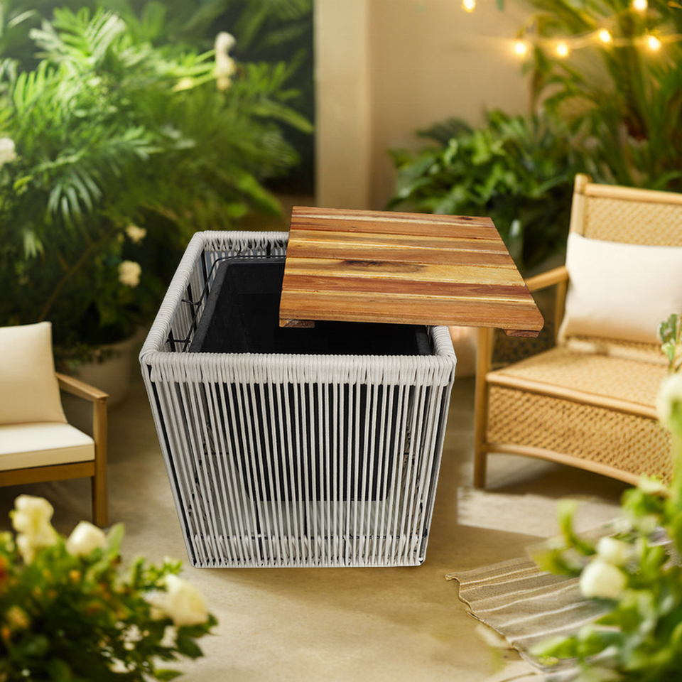 Stylish Modern Acacia Wood Woven Rope Tables for Dining Socializing Living Room Workshop Courtyard Home Bar Basement