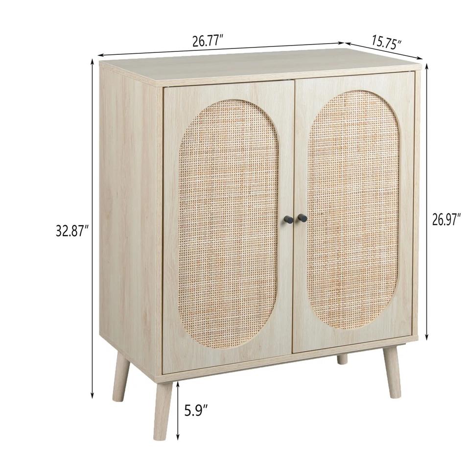 Stylish Natural Wood and Rattan Cabinet with Arched Doors Elegant Storage Unit Durable Design Perfect for Bedroom Decor