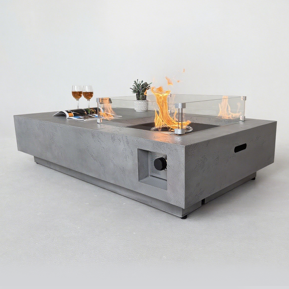 Stylish Outdoor and Indoor Steel Gas Fire Pit Table Rectangle Propane Fire Pit for Garden Parties for Indoor and Outdoor Use