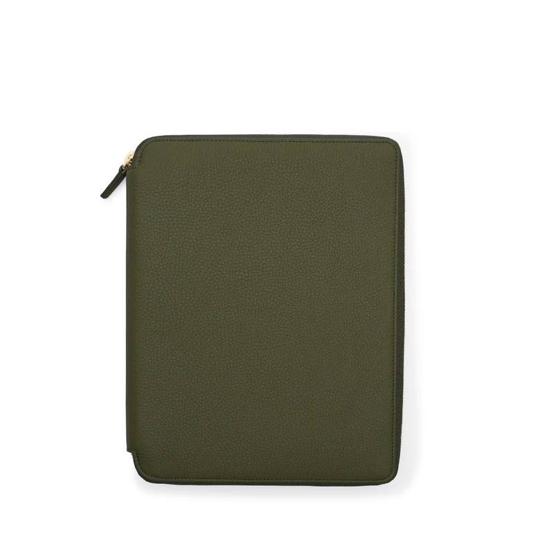 Stylish PU Leather Green Conference Folder Zipper Closure Pen Loop Interior Pockets for Men Women Travel Organizer Filing