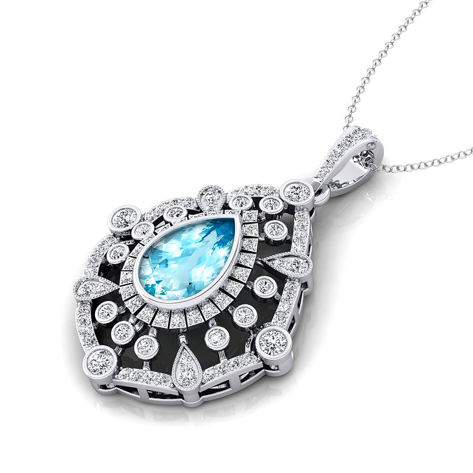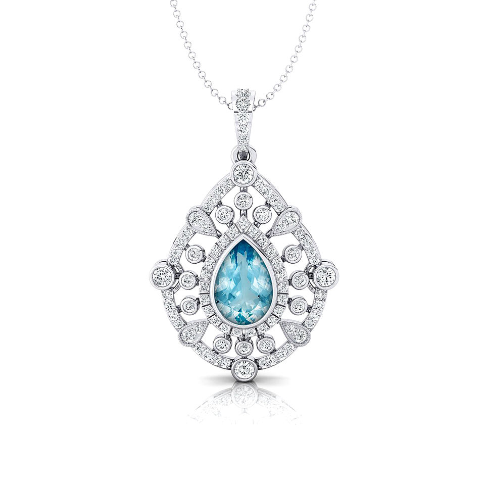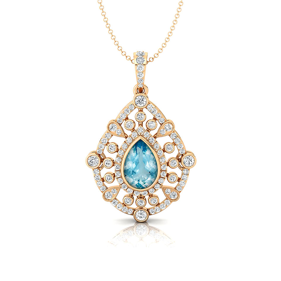 Solid Gold Natural Aquamarine Gemstone Charm's Pendants Studded With Real Certified Diamonds Valentines Day Gift for Girlfriend