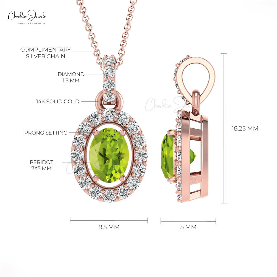 Stylish 14K Solid Gold Peridot Pendant Necklace Dainty Design Diamond Accents Verified Alibaba Supplier for Fine Pendants Charms
