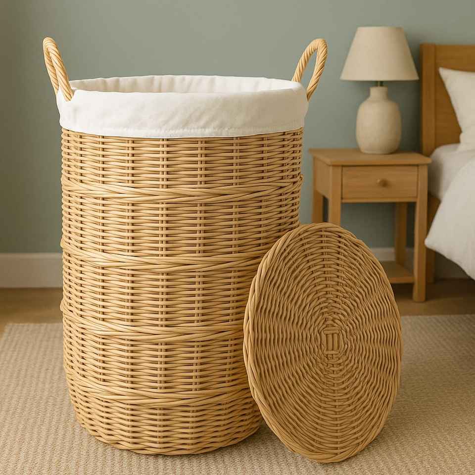 Stylish & Practical Handwoven Round Wicker Rattan Storage Baskets with Handles for Shoes Laundry Home Organization
