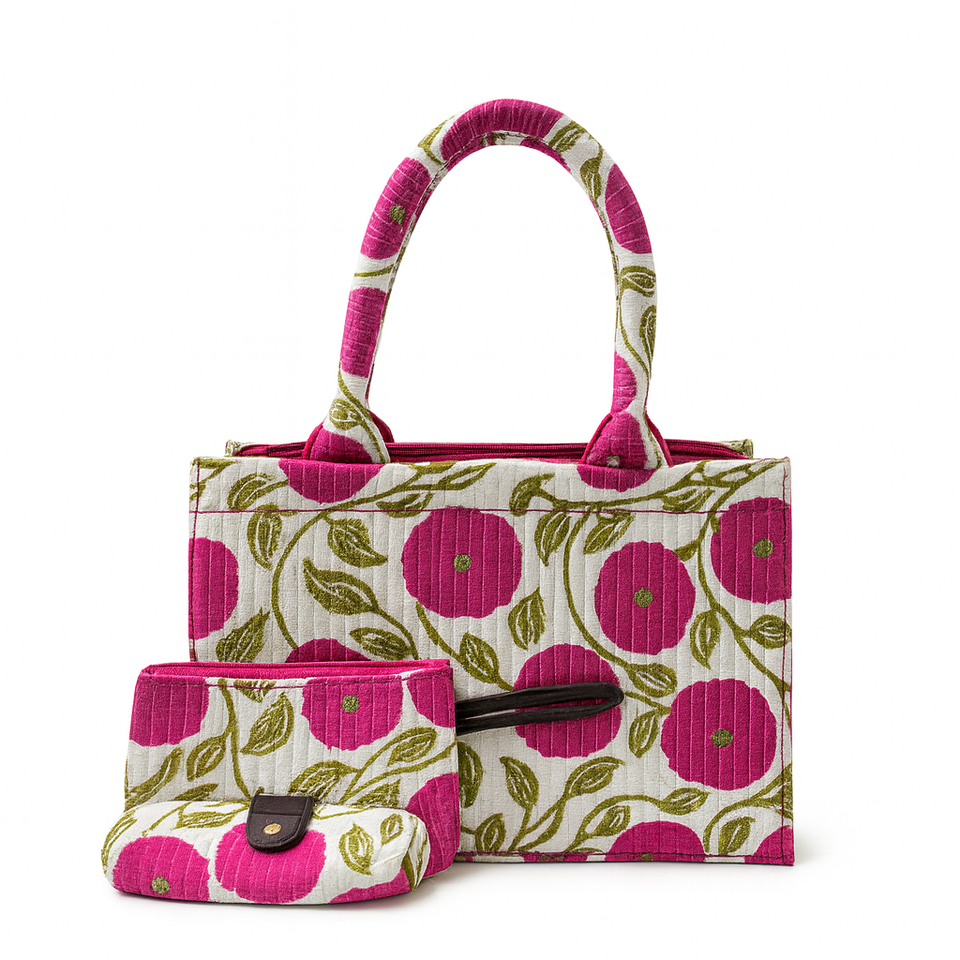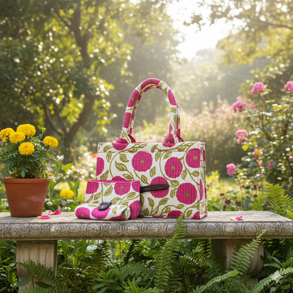 Stylish Premium Cotton Fabric Quilted Zipper Embroidery Chains Durable Spacious Spring Summer Tote Bag Set Ladies Fashionable