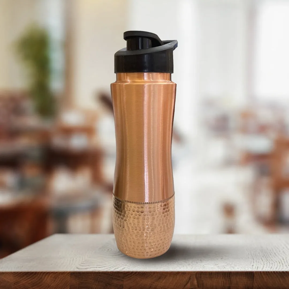 Stylish Pure Copper Water Bottle | Handmade Metal Drinking Bottle | Sustainable Eco-Friendly Large Capacity Flask with Lid