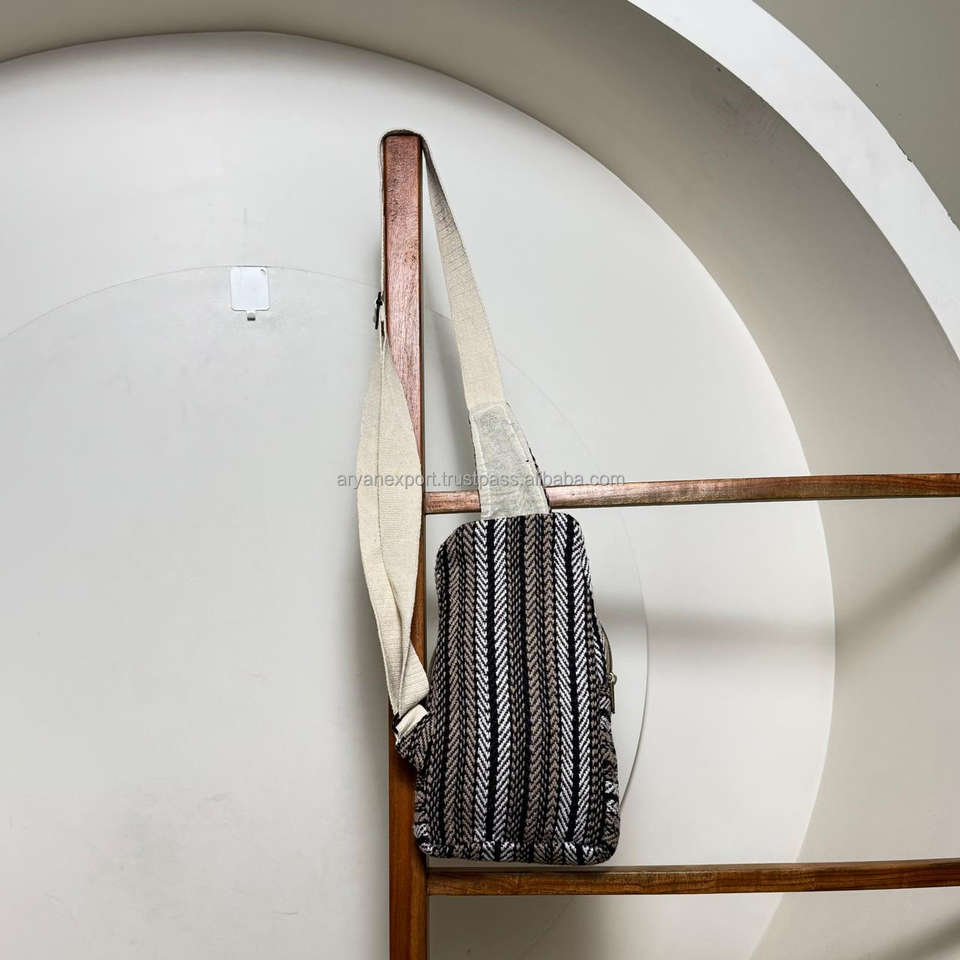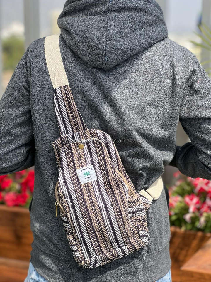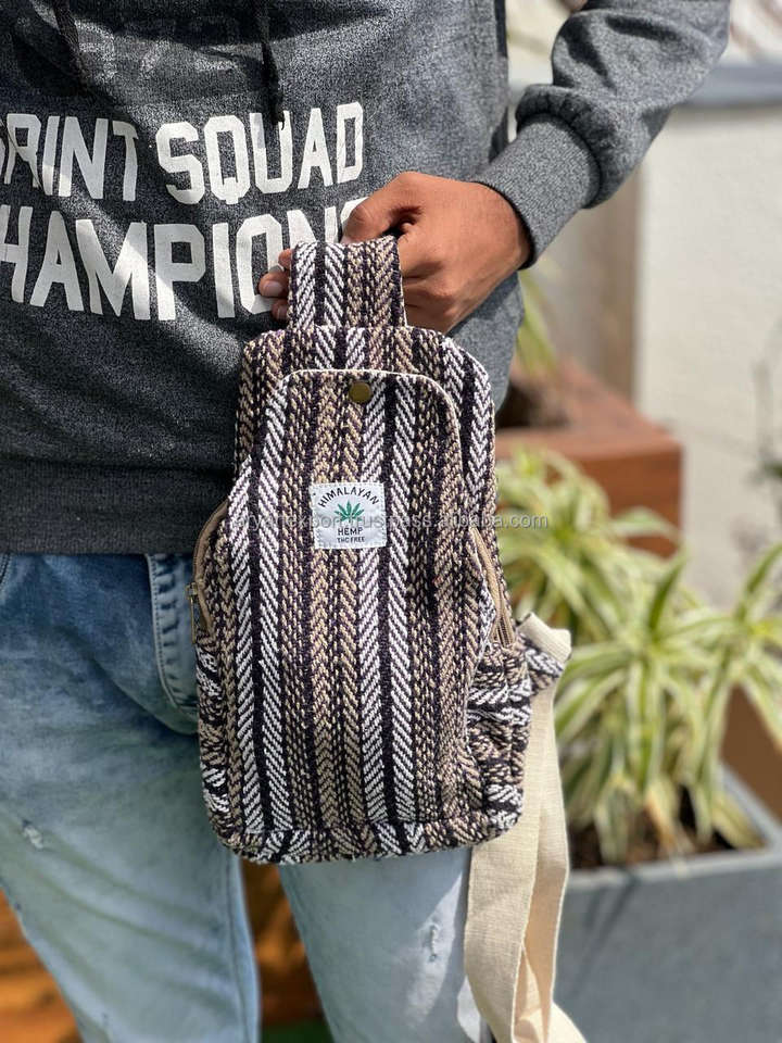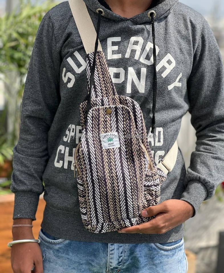 Stylish Pure Jute Hemp Crossbody Shoulder Bags for Unisex Himalayan Hemp and Cotton Sling Bag Travel Chest Bag for Men and Women