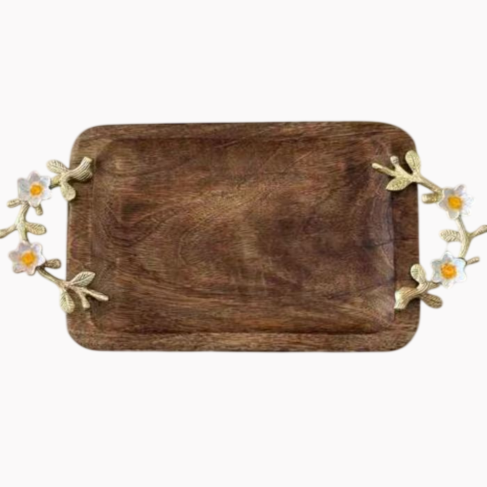 Stylish Rectangular Wooden Tray With Silverware Elegant Handle Hotel Ware Accessory Perfect For Serving Snacks Cookies On Sale