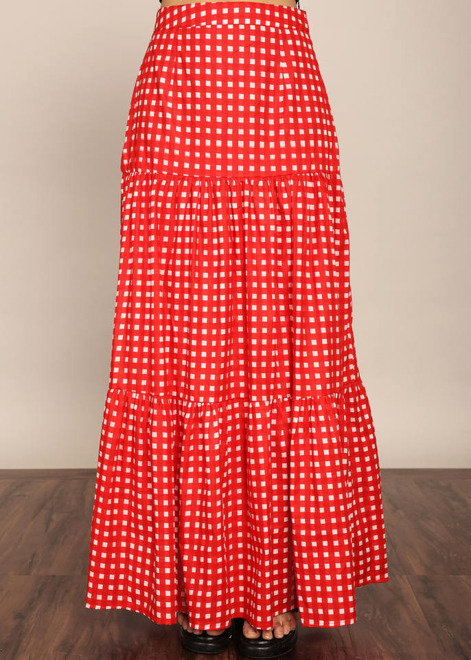 Product Name:Red Western Cotton Relaxed Long Skirt