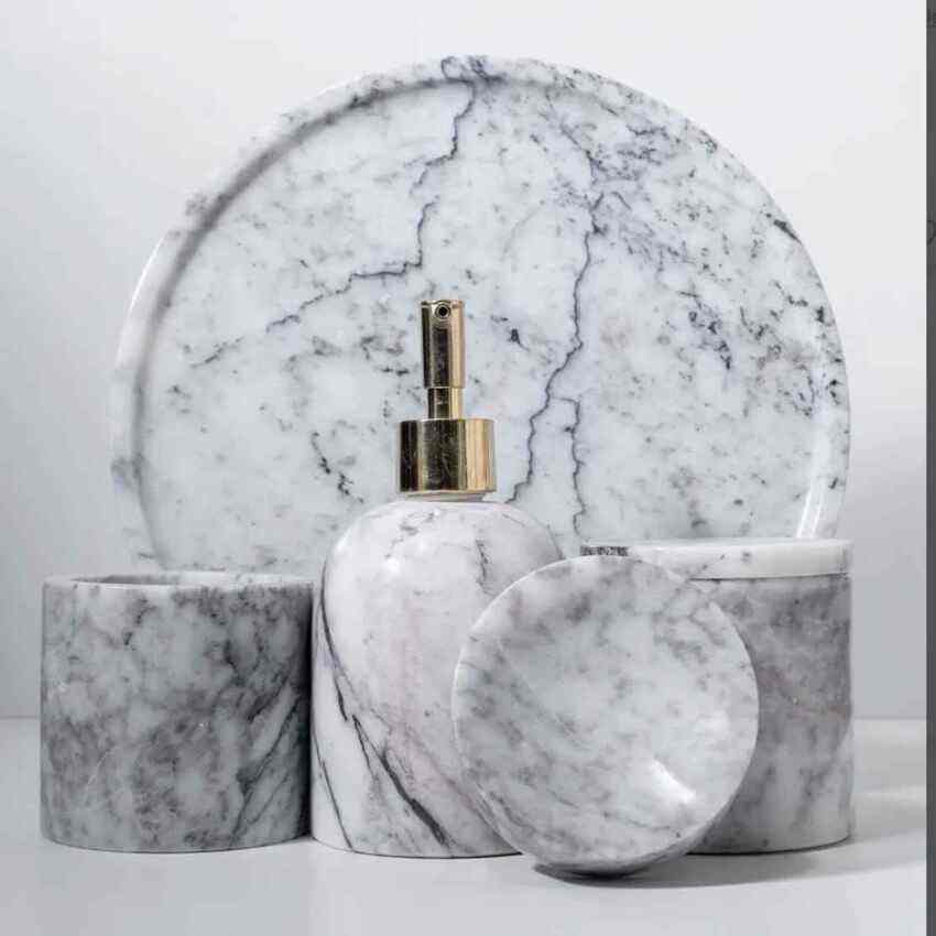 Stylish Resin Bathroom Set Luxury Vanity Organizer Soap Dish Toothbrush Holder Tumbler Tray Modern Home Essentials