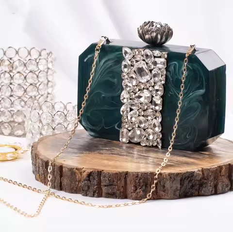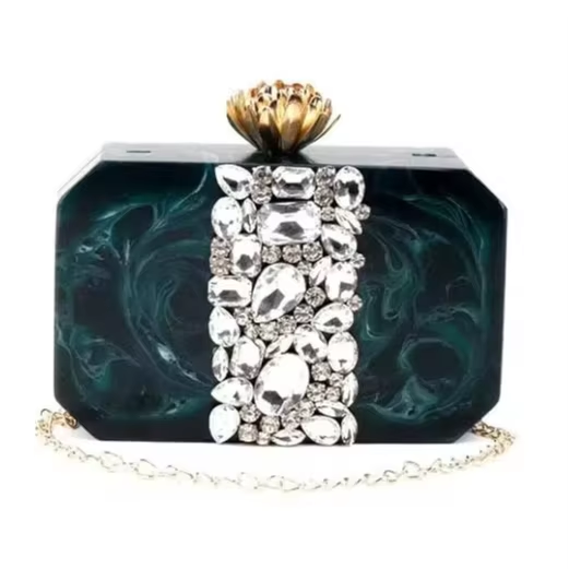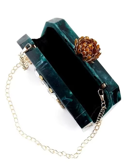 Stylish Rhinestone Clutch for Ladies Resin and Metal Handbag for Wedding Party Events Elegant Purse by Ah Impex