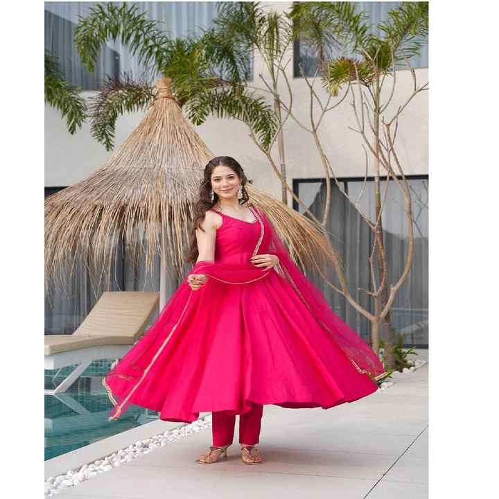 Stylish Roman Silk Anarkali Kurta Dress for Women Party Wear Ethnic Indian Outfit with Embroidered Detailing & Matching Dupatta
