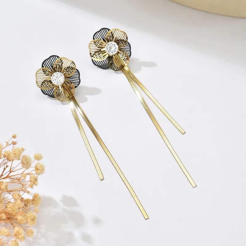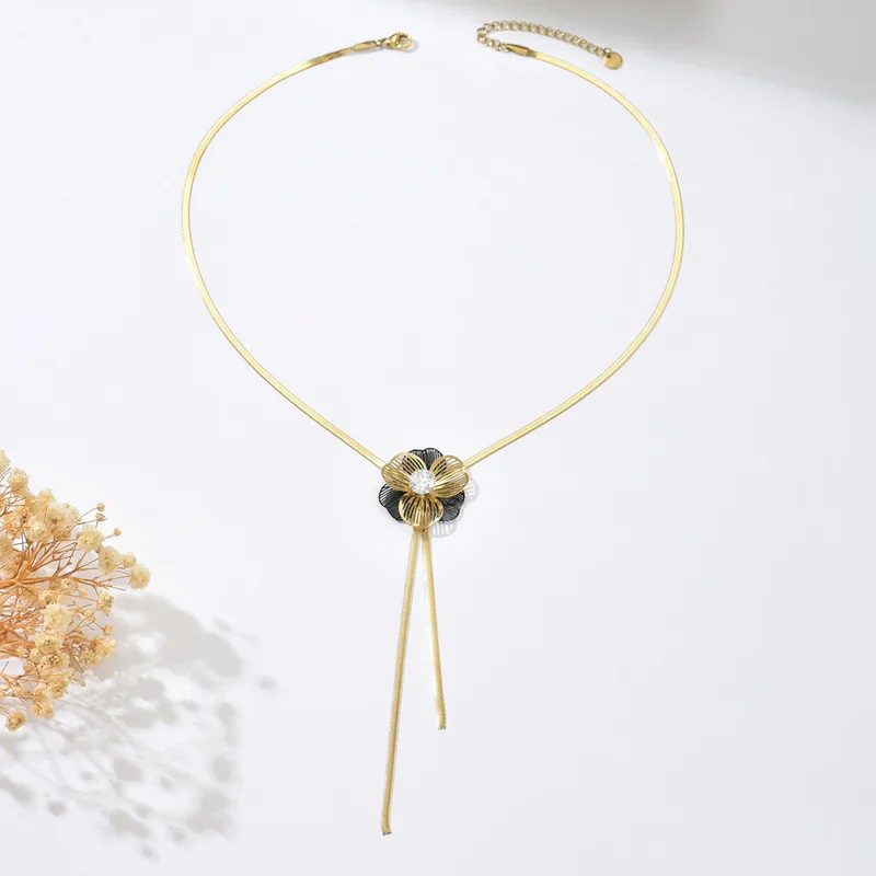 Stylish Romantic Flower Jewelry Set for Women with Flat Snake Chain Rings Bracelets and Earrings Made from 304 Stainless Steel