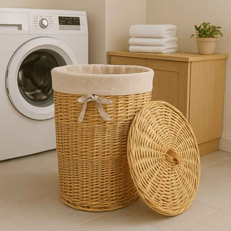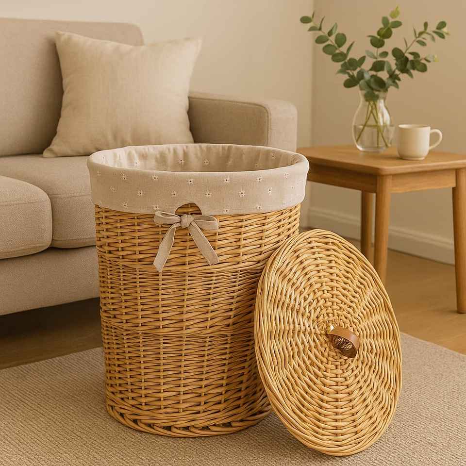 Stylish Round Handwoven Natural Rattan Storage Baskets with Handles Durable & Versatile for Clothing Shoes & Home Decor Use