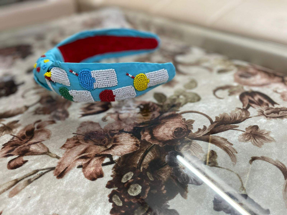 Stylish Seed Bead Knotted Headbands with Cups & Straws Trendy Velvet Fabric Hair Accessories Braided and Knotted Style