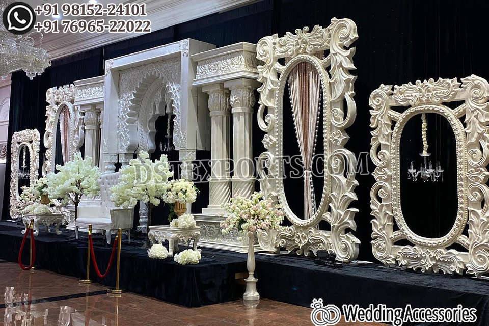 Stylish Silver Polish FRP Frame for Wedding Medallion Top Wedding Stage Backdrop Frames Wedding Stage Frp Carved Frames USA
