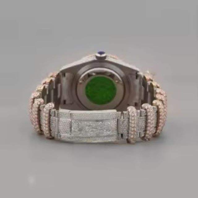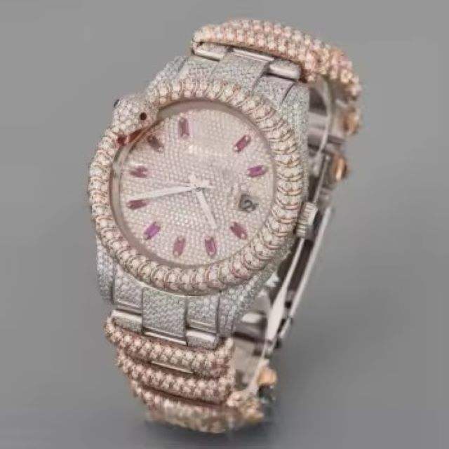 Stylish Snake Pattern Rose Gold Men's Quartz Watch with VVS Moissanite Diamond Custom Analog Dial