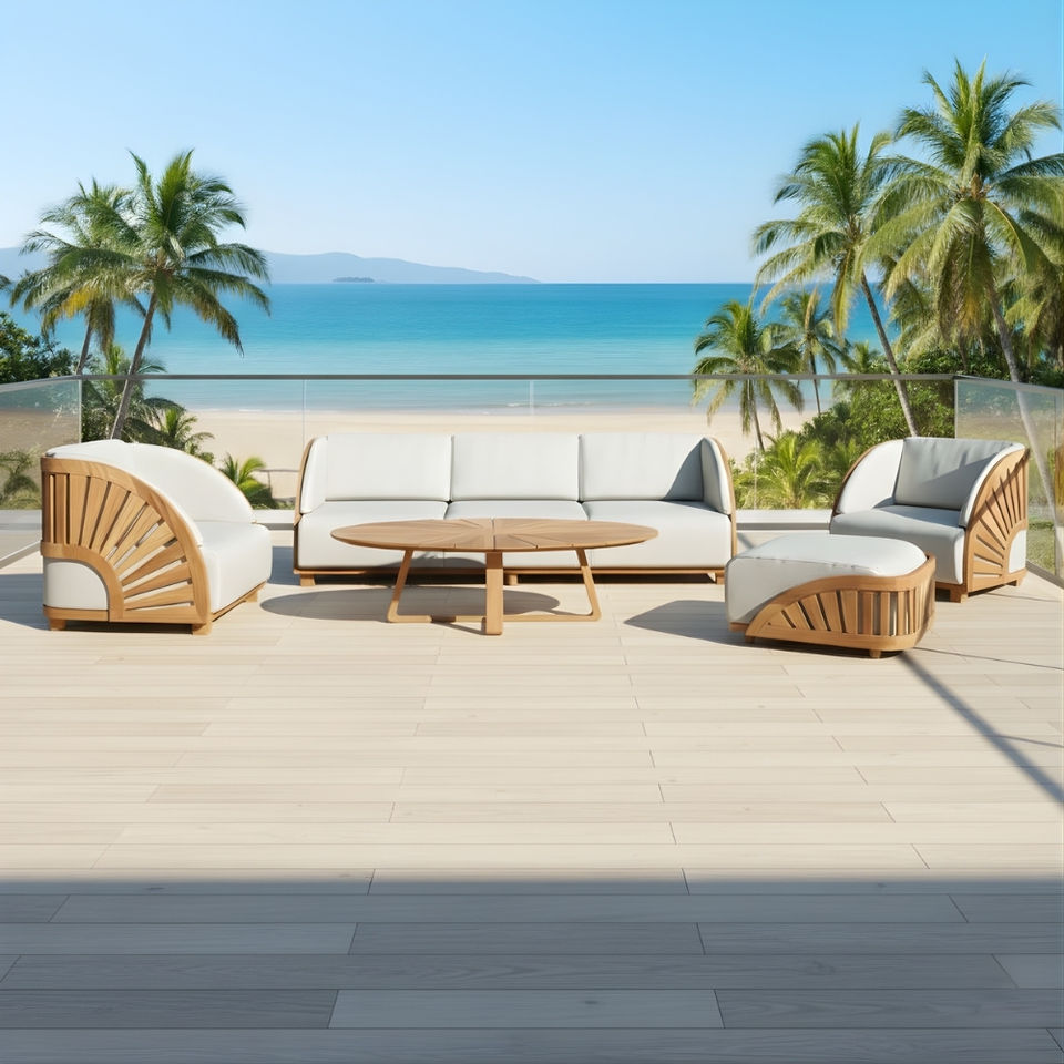Stylish Modern Solid Teak Outdoor Garden Sofa Set Weather Resistant Lounge Seating Patio Terrace Poolside Hotel Furniture