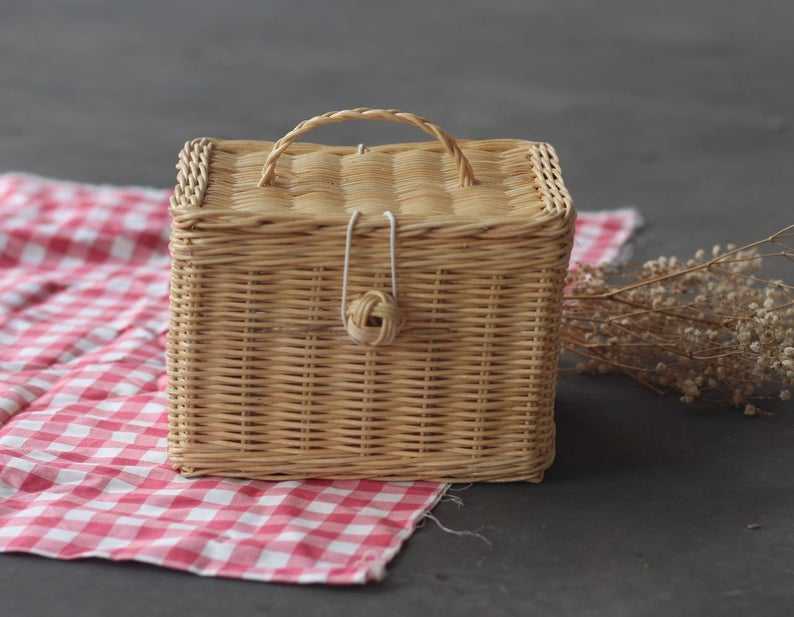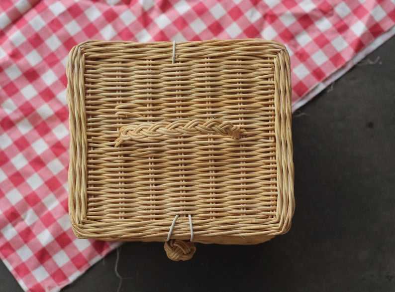 Stylish Square Shaped Rattan Picnic Box Handbag Unique Storage Solution