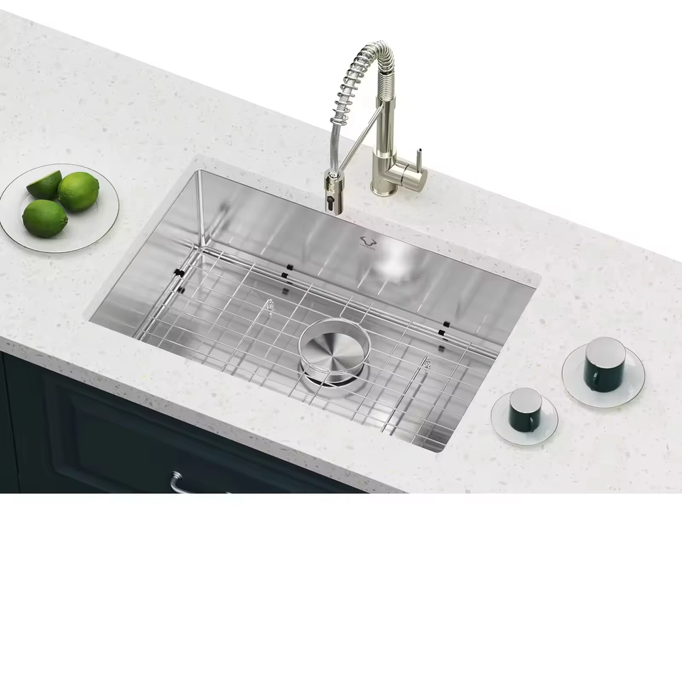 Stylish Stainless Steel 27\" 18\" Undermount Kitchen Sink 9 Inch Deep Single Bowl 18\" Apron-Front for Apartment High One