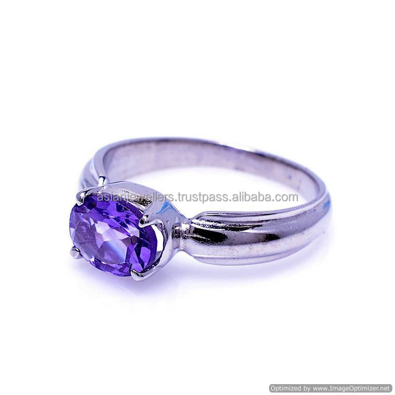 Stylish Sterling Silver Fine Ring with Natural Amethyst Gemstone for Wedding Engagement Gift Party or Anniversary