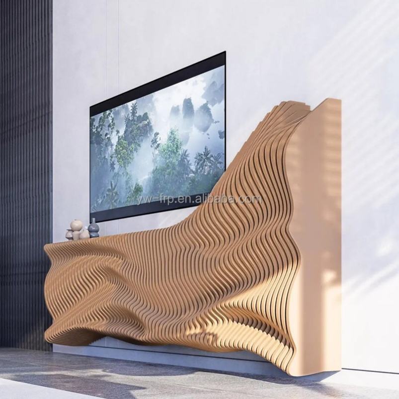 Stylish Storage Shelf Parametric Furniture Design Modern Wall Mounted TV Stand Rubber Wood Offering Living Room Home Office