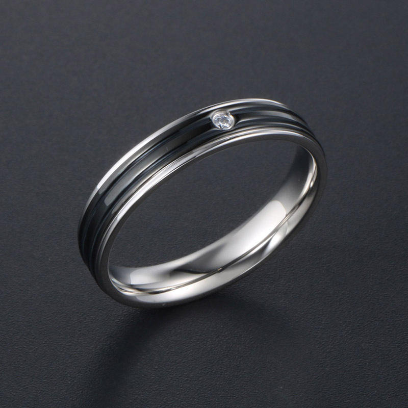 Stylish Striped Diamond Couple Rings Titanium Steel Wedding Bands Unisex Jewelry SA527 528