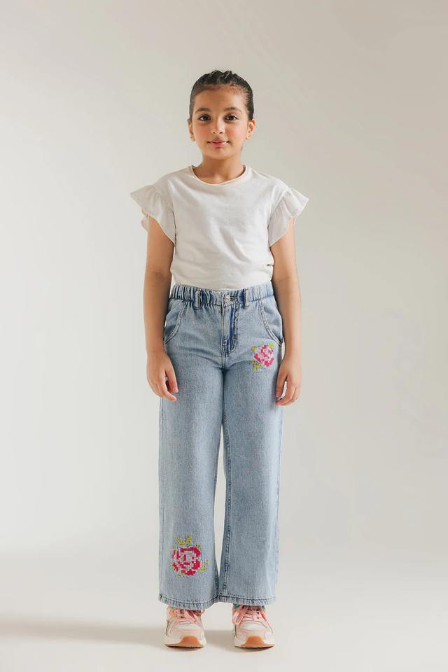 Stylish Summer Kids Girls Jeans Comfortable Casual Denim Pants Trendy Daily Wear Outfit