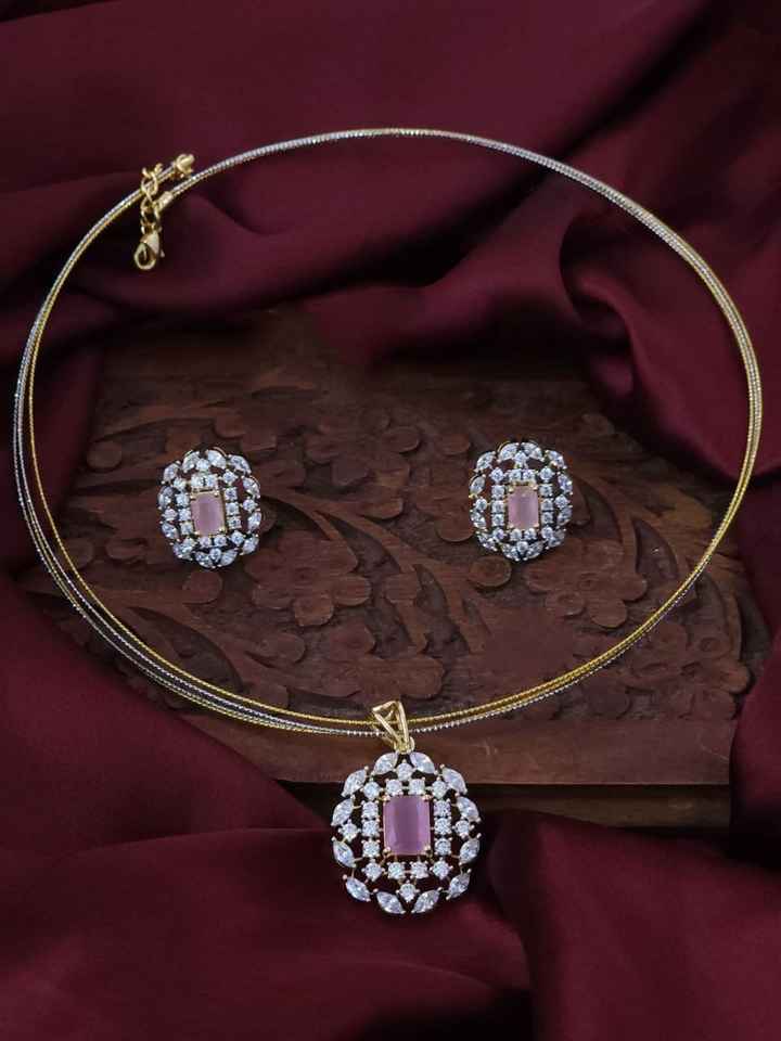 Stylish Trendy Pendent Set With AD And Gold Chain Necklace Set With Earrings for Party Perfect for Wedding Daily Wear For Women