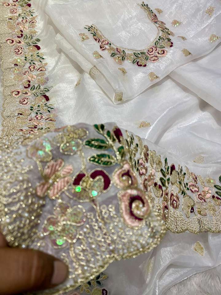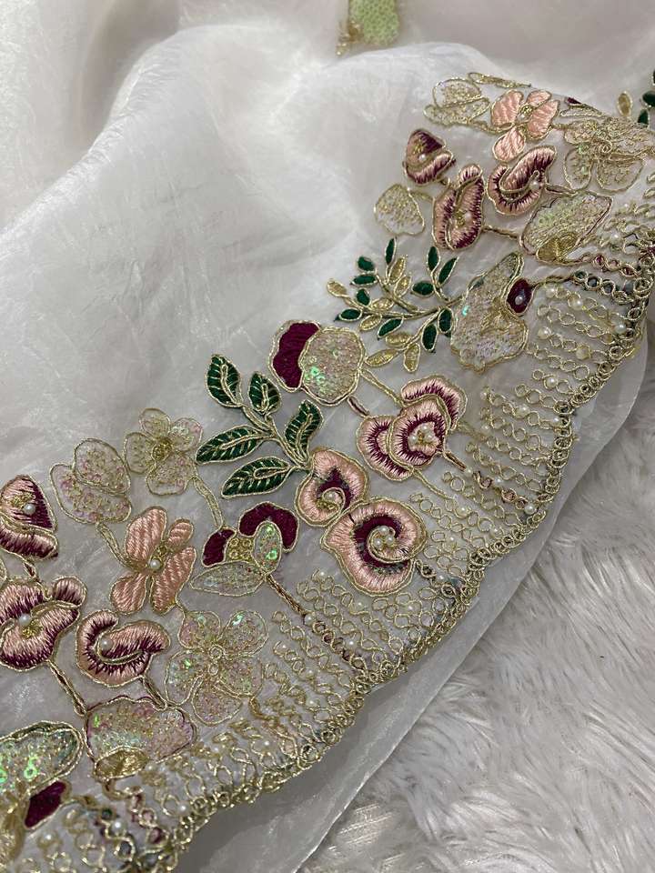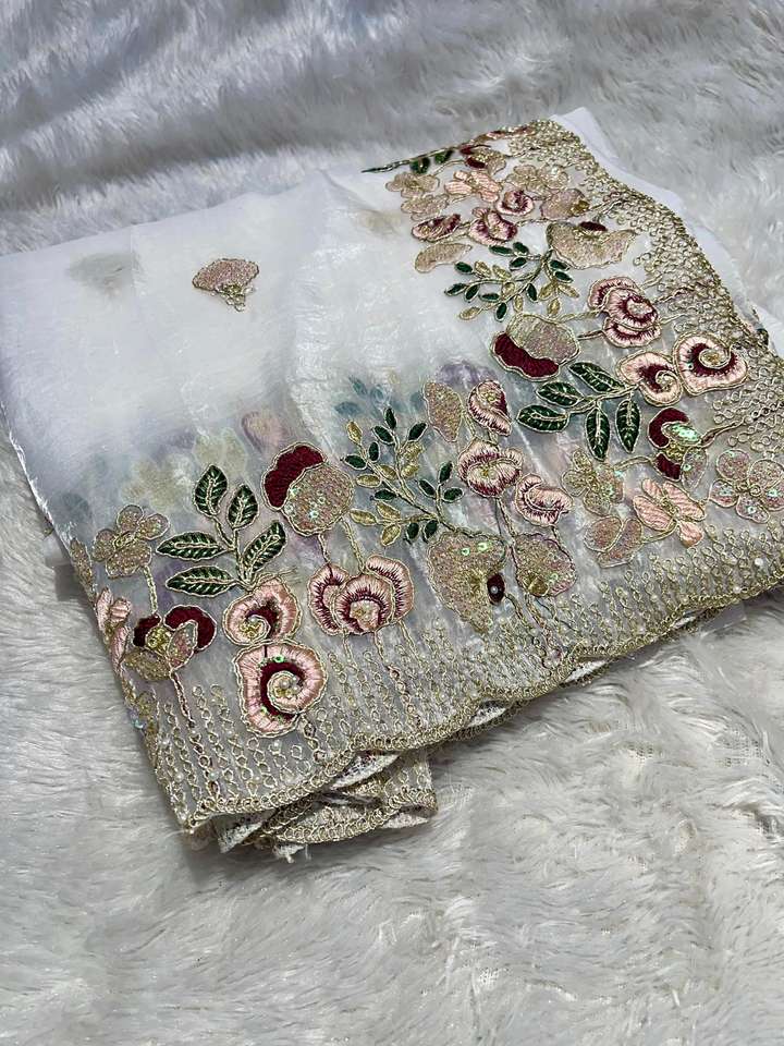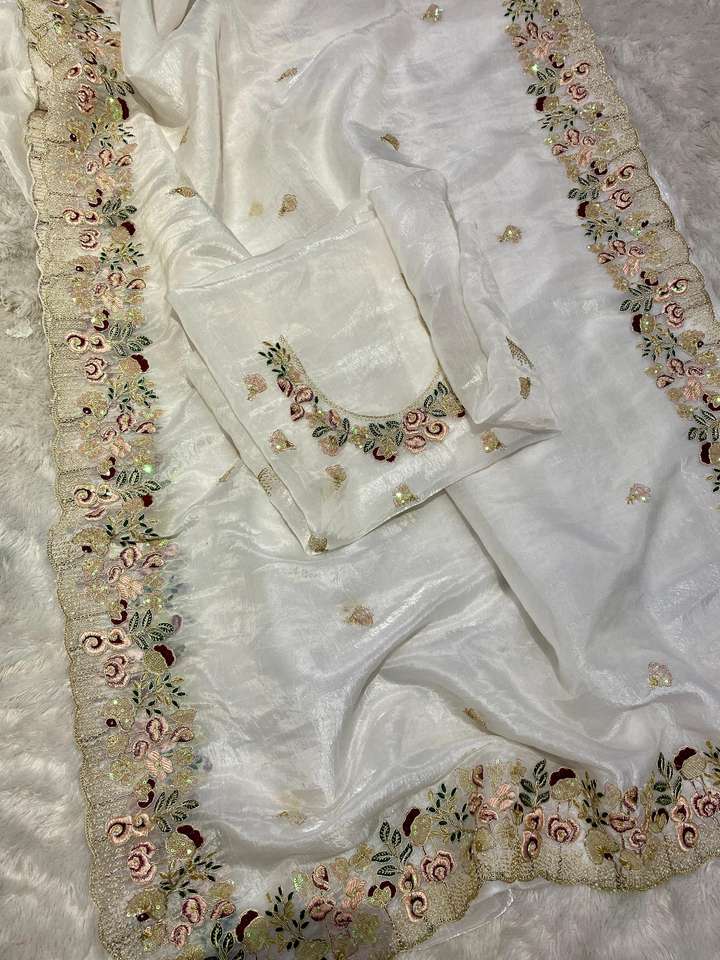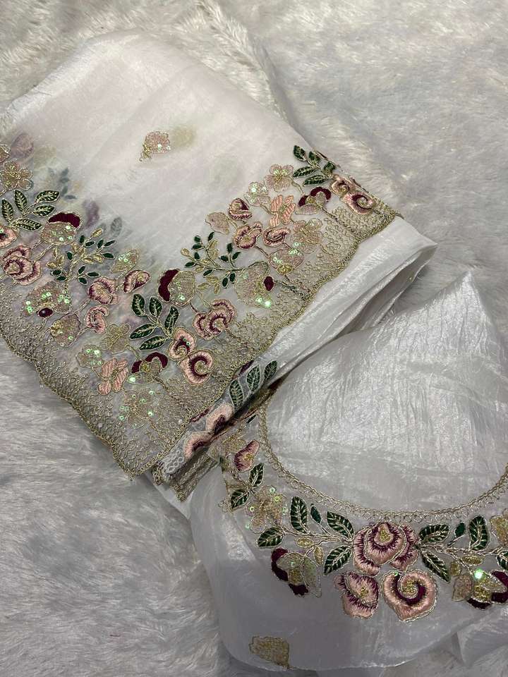 Stylish Traditional Soft Organza Tissue White Sari For Party Wedding Wear With Trendy Fancy Blouse Most Selling Women Saree