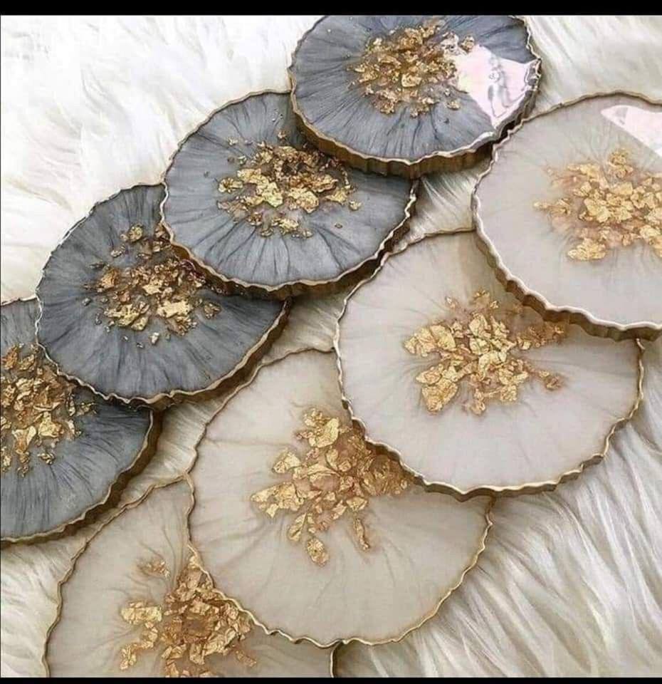 Stylish Trending Eco-Friendly Resin Coaster Set Art Deco Gold Foil Handmade Wood Handicraft Fruit Fairy Wedding Home Decor Gift