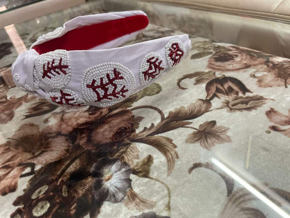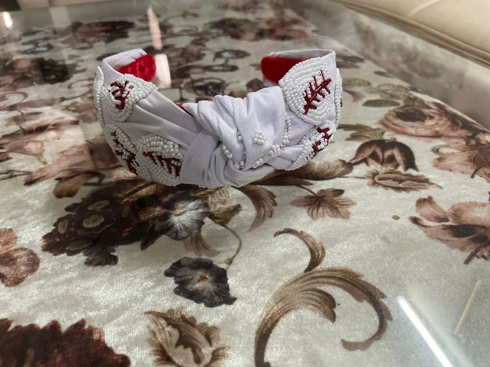 Stylish Trendy Baseball Seed Bead Hairband for Women Knotted Velvet Fabric Hairclip Accessory Braided Style