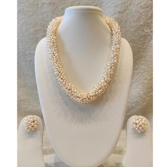 Stylish Trendy Brass Silver Plated CZ Zircon Long Pearl Necklace & Earring Set for Women-Party Gift Wedding Jewelry