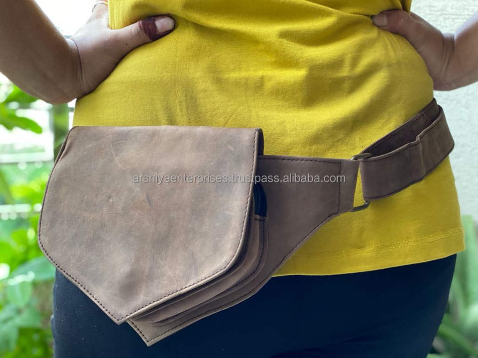 Stylish Unisex Real Handmade Suede Leather Fanny Pack Multi-Pockets Waist Hip Bags Adjustable Strap Belt Utility Waist Pack
