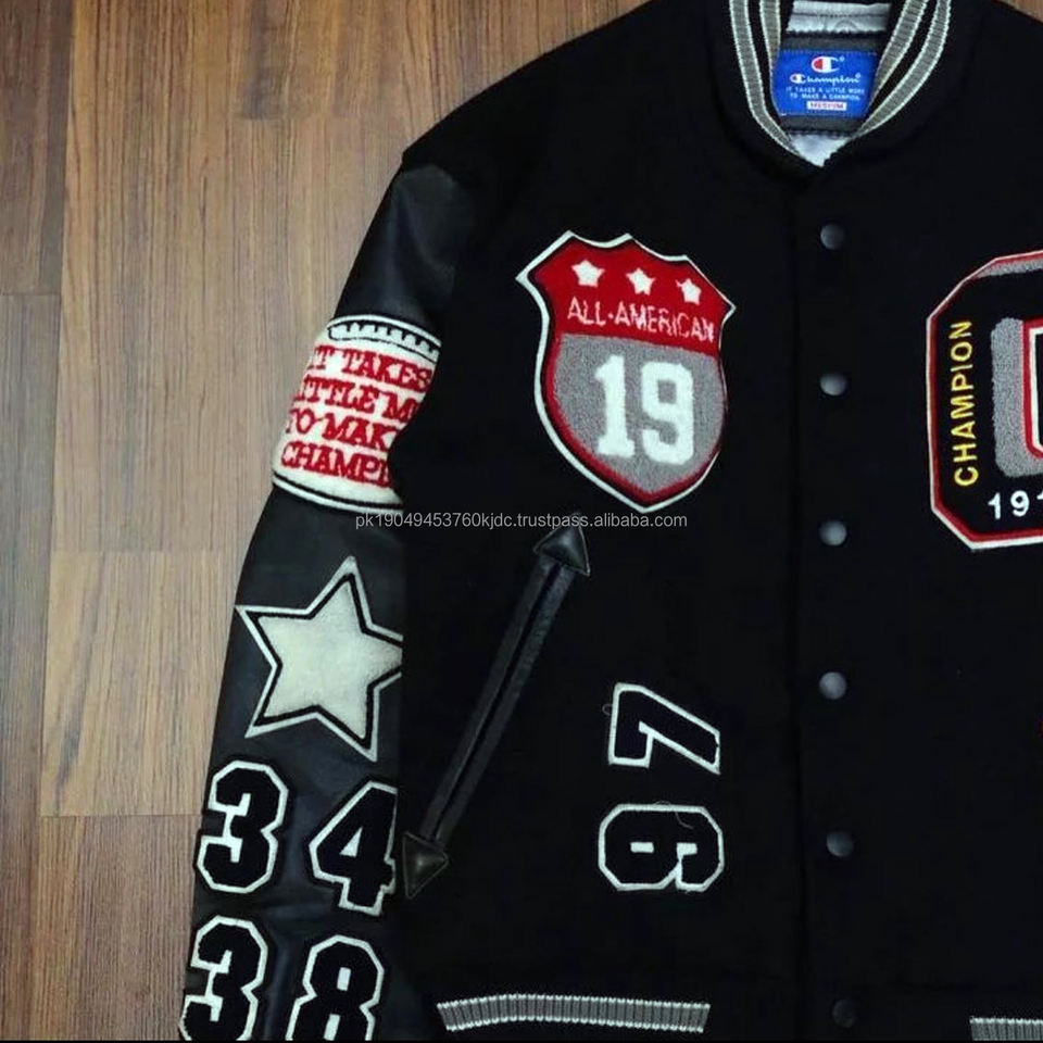 High Quality Unisex Stylish Varsity Jacket Windproof Sheep Skin Sleeves Plain Dyed Fabric Printed Technics Men Women's Letterman