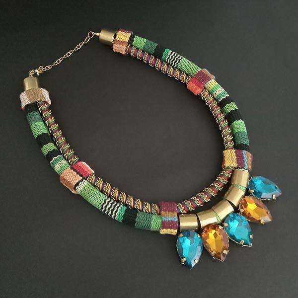Stylish Urthn Gold-Plated Multi-Stone Statement Necklace 1108004B-Fashion Accessory