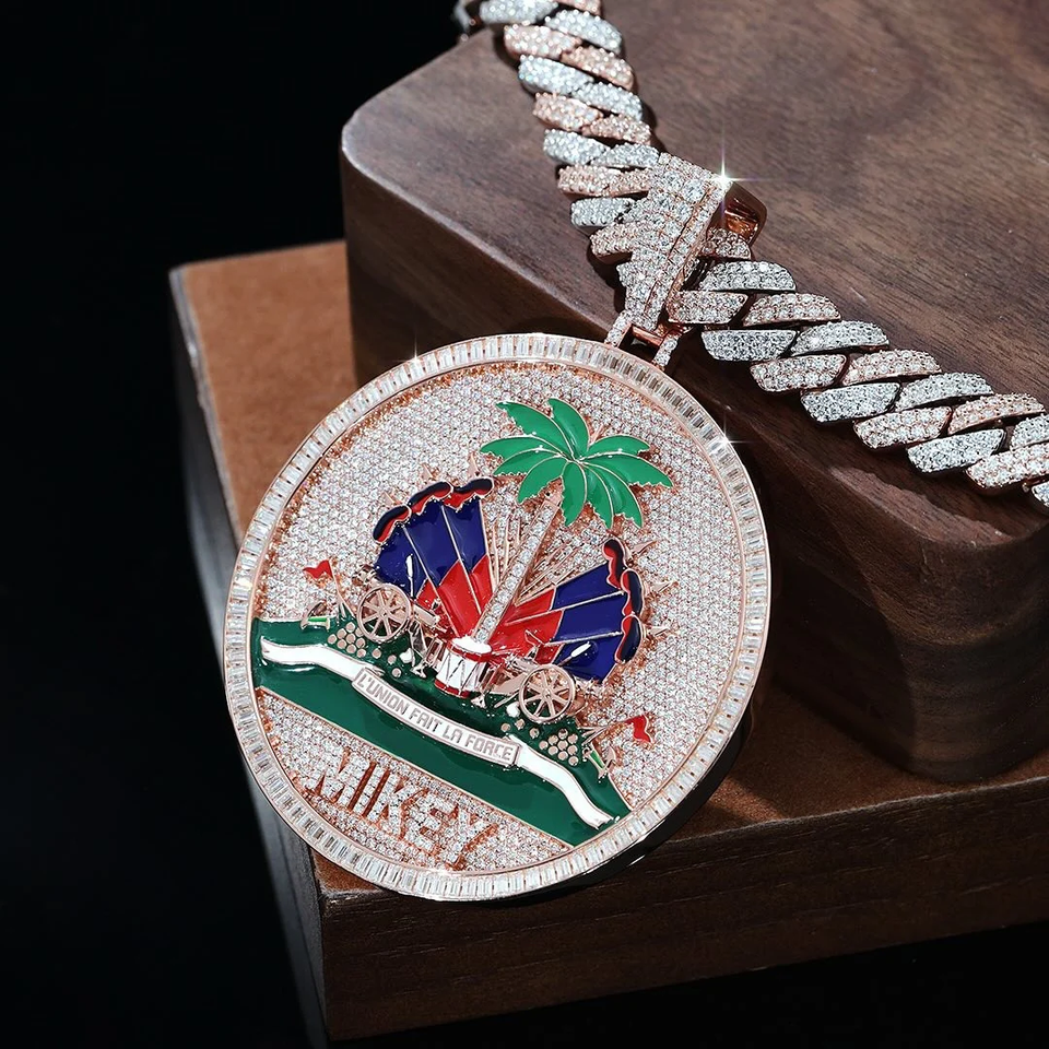 Stylish VVS Moissanite Diamond Iced Out Hip Hop Pendant Necklace With Gold Plated 925 Silver Enamel Luxury Design Pendant