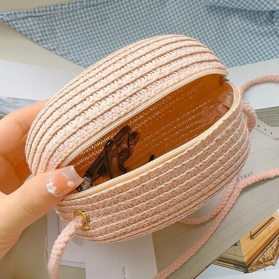 Stylish Women's Round Paper Straw Beach Bag with Polyester Lining Zipper Closure Two Shoulder Handles Vietnam Design