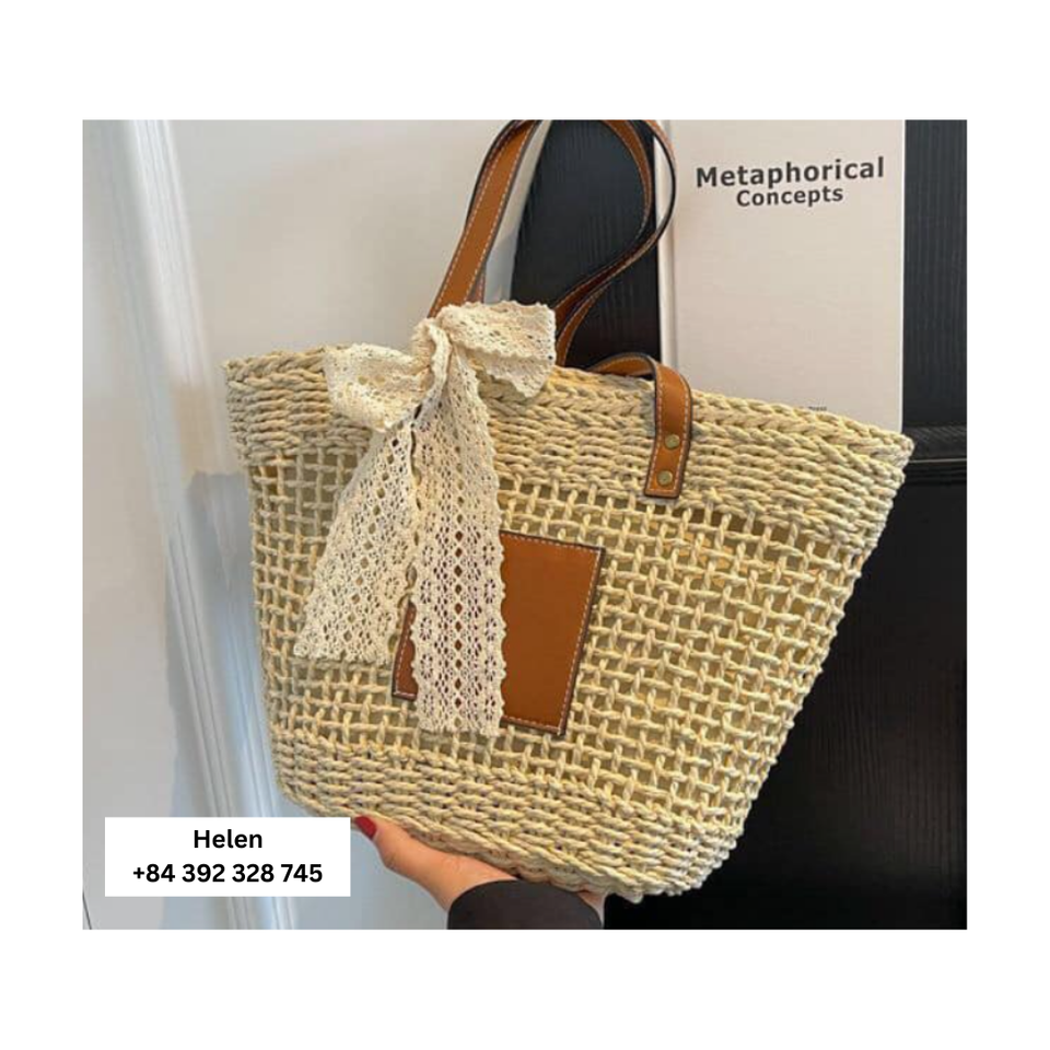 Stylish Vintage Handwoven Seagrass Tote Bag Elegant Lightweight Eco friendly Beach Bag at Wholesale Factory Price Vietnam