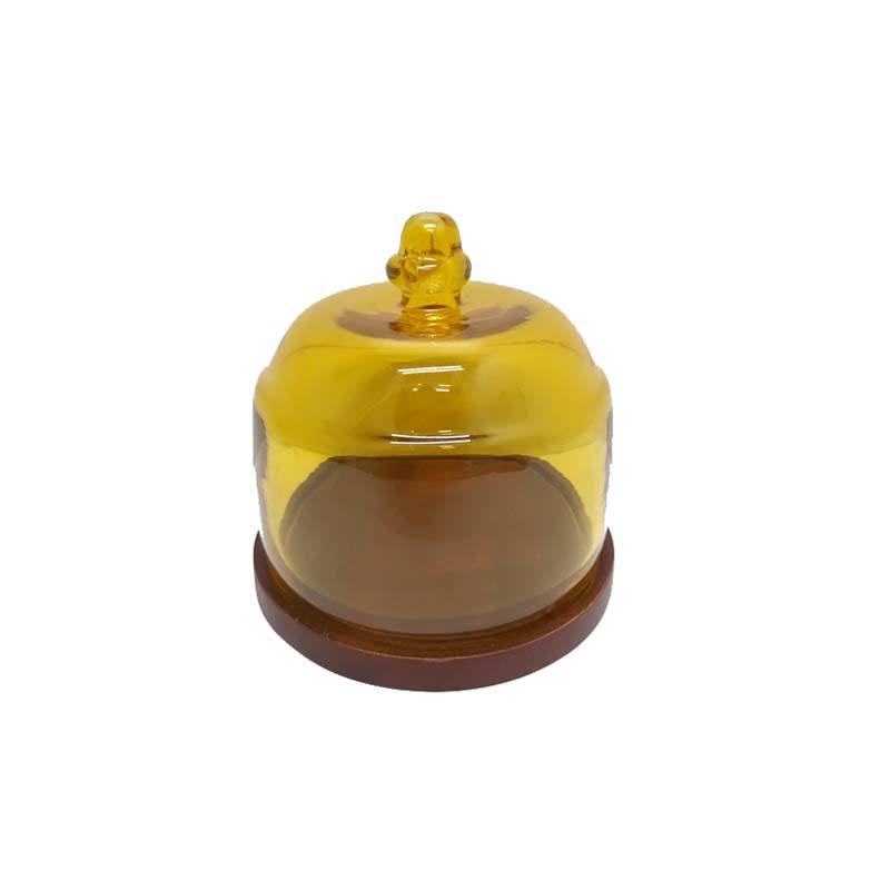 Stylish Walnut Color Round Wooden Cake Stand with Glass Dome PC Plate Material for Kitchen Table Top Decorative Purpose