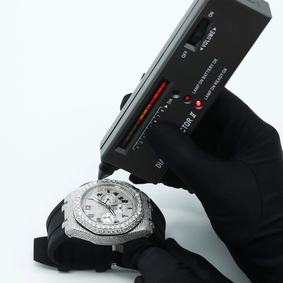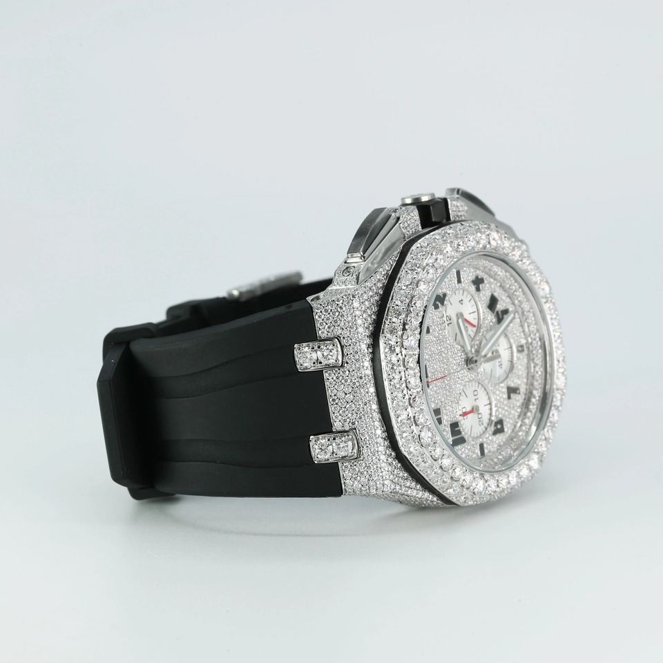 Stylish Watch Solid 925 Sterling Silver Plated Black Color Rubber Bant Watch for Men's Fashion Jewelry Iced Out Hip Hop Diamond
